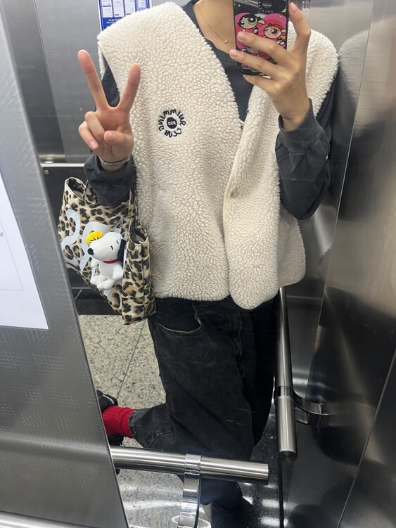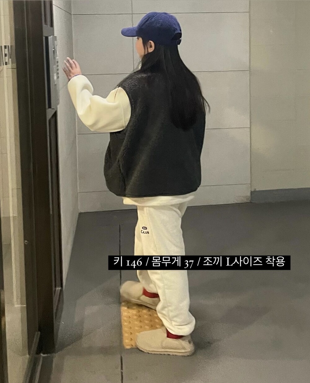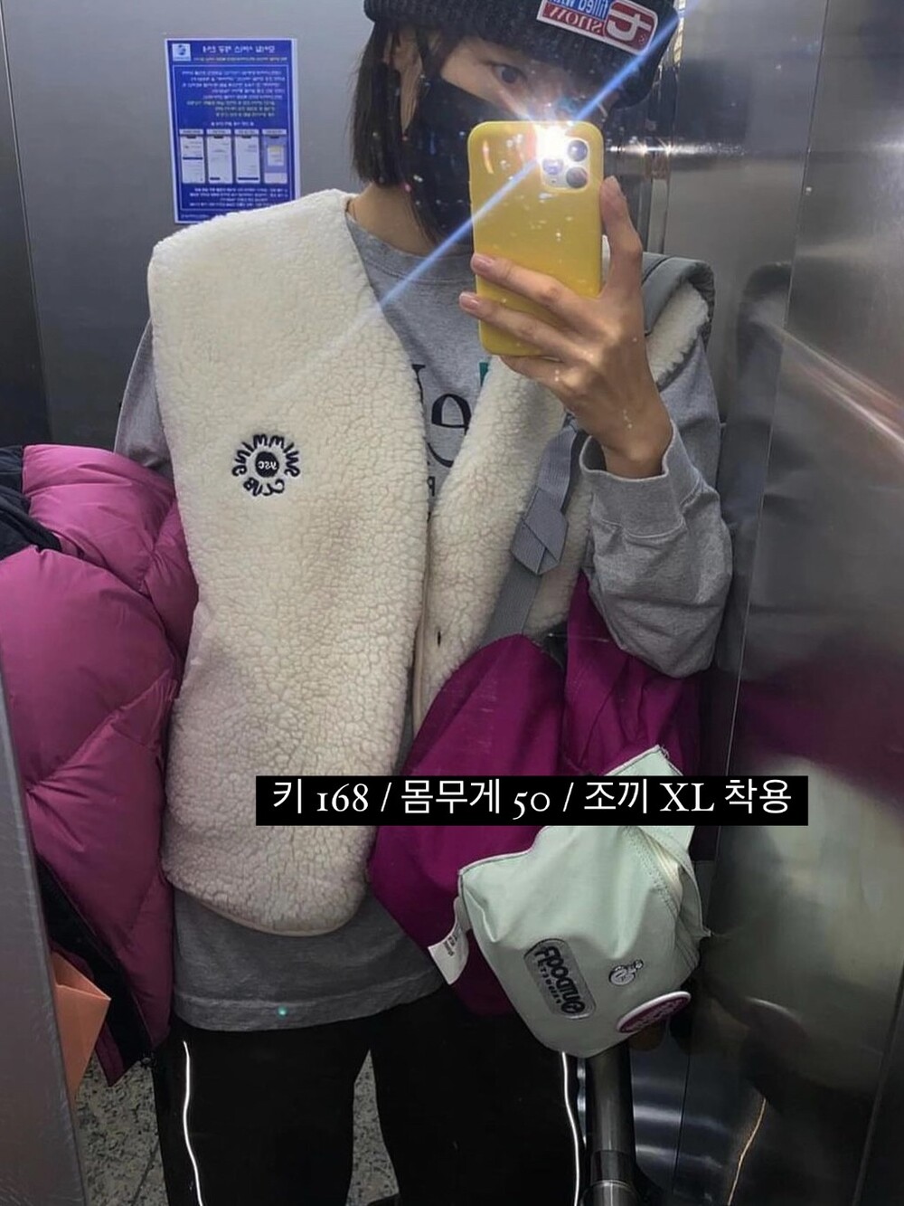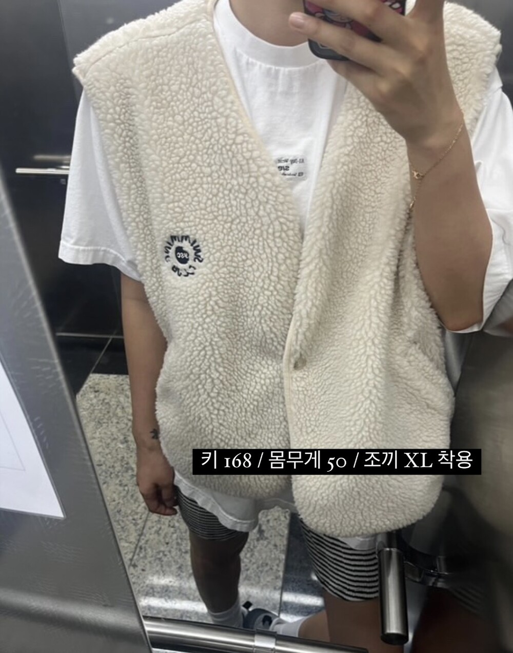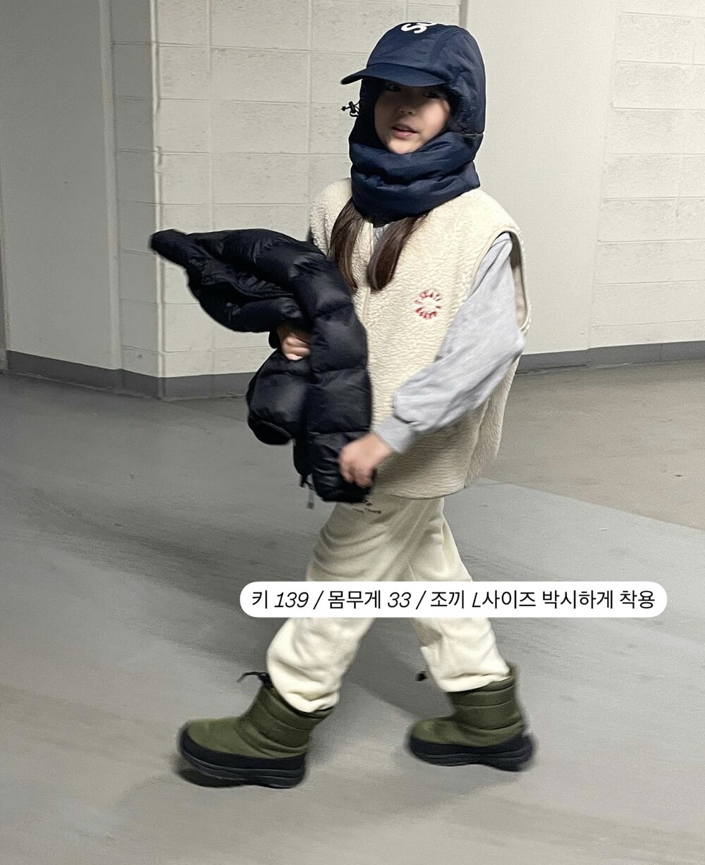 아이 키 153 / 몸무게 43/ 조끼 XL 많이 박시하게 착용