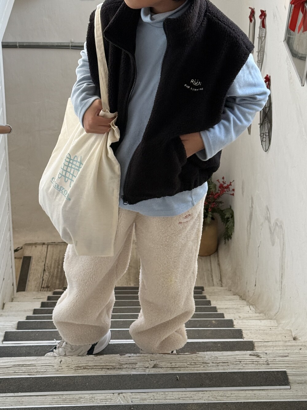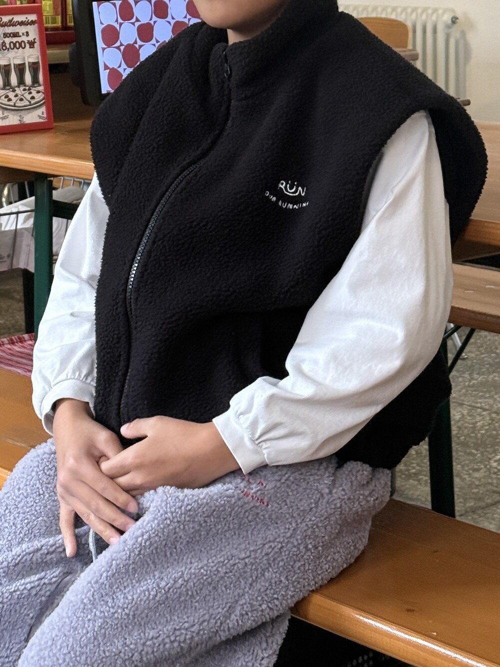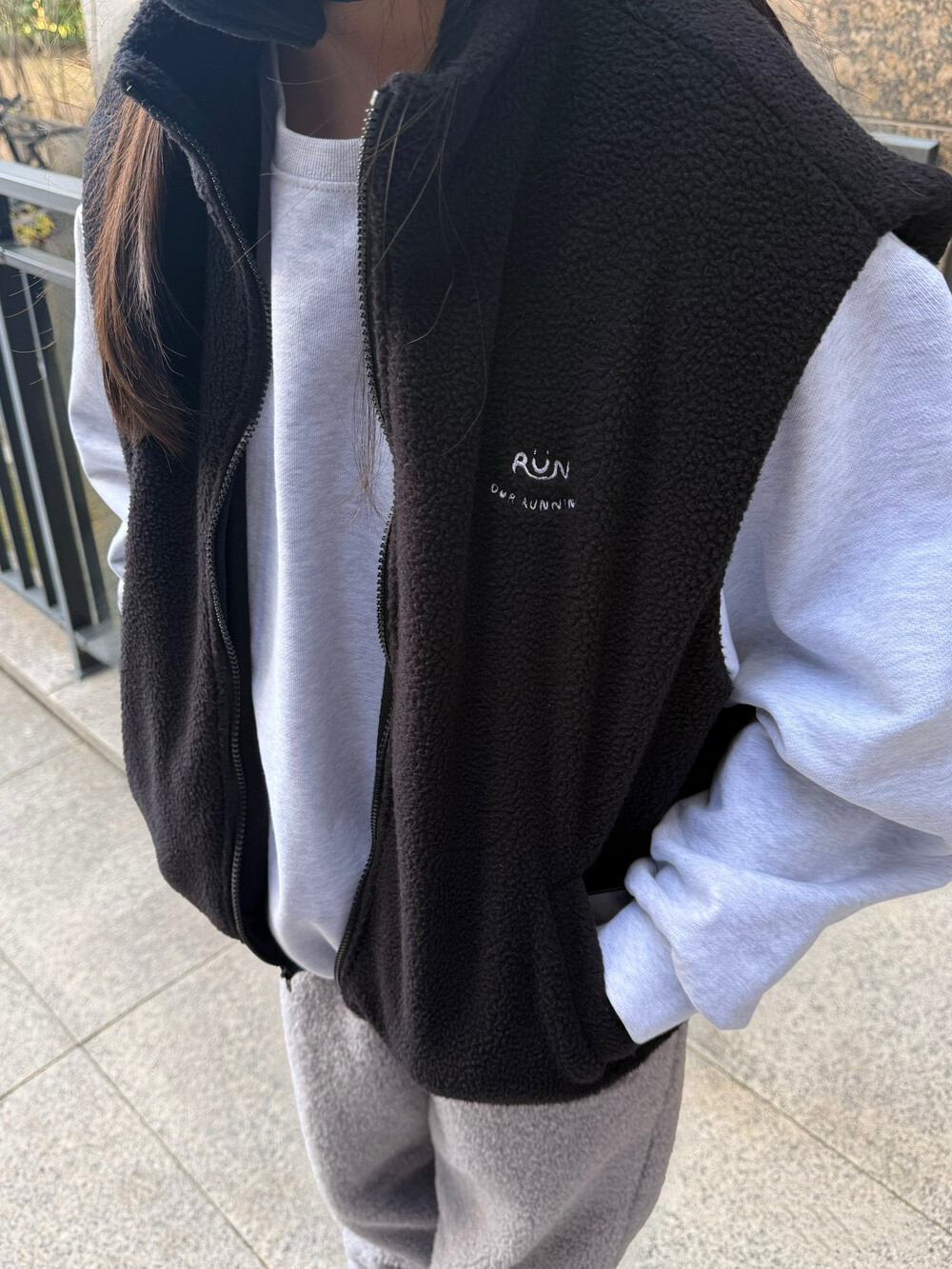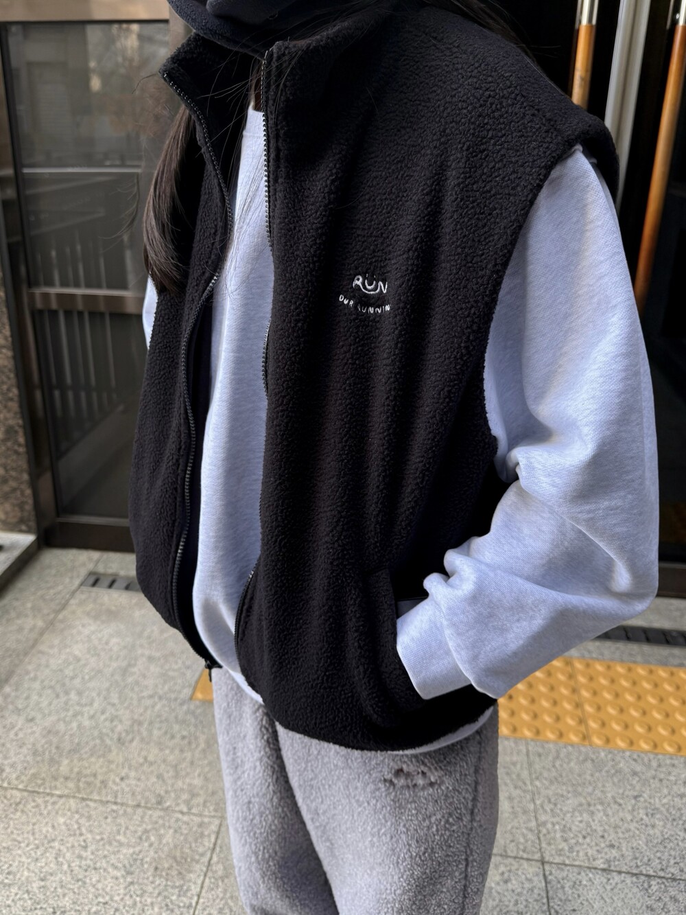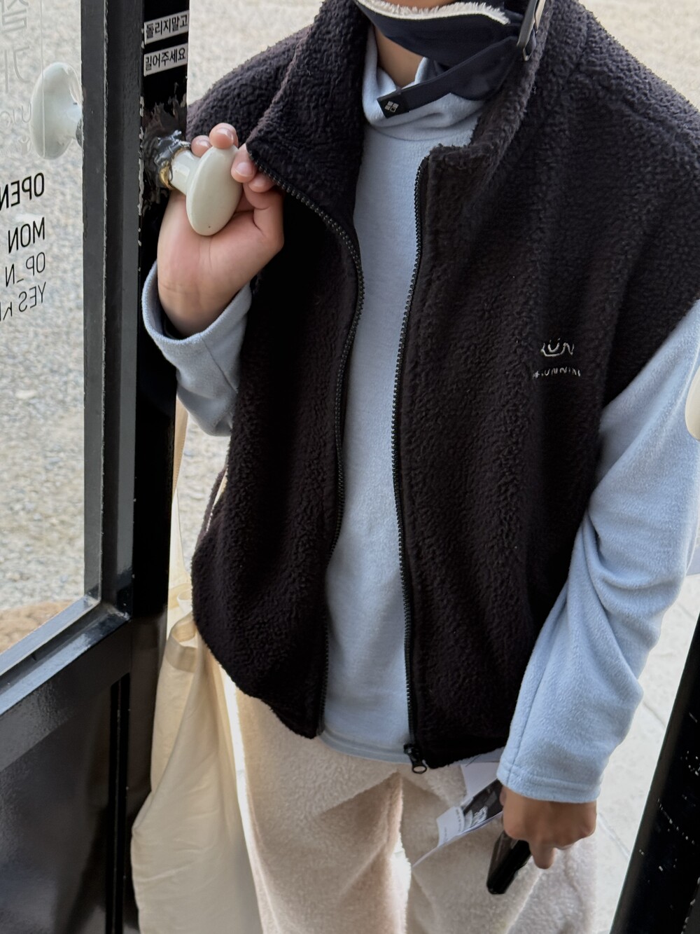 이중 플리스 원단으로 안감은 극세사 플리스를 사용하였고